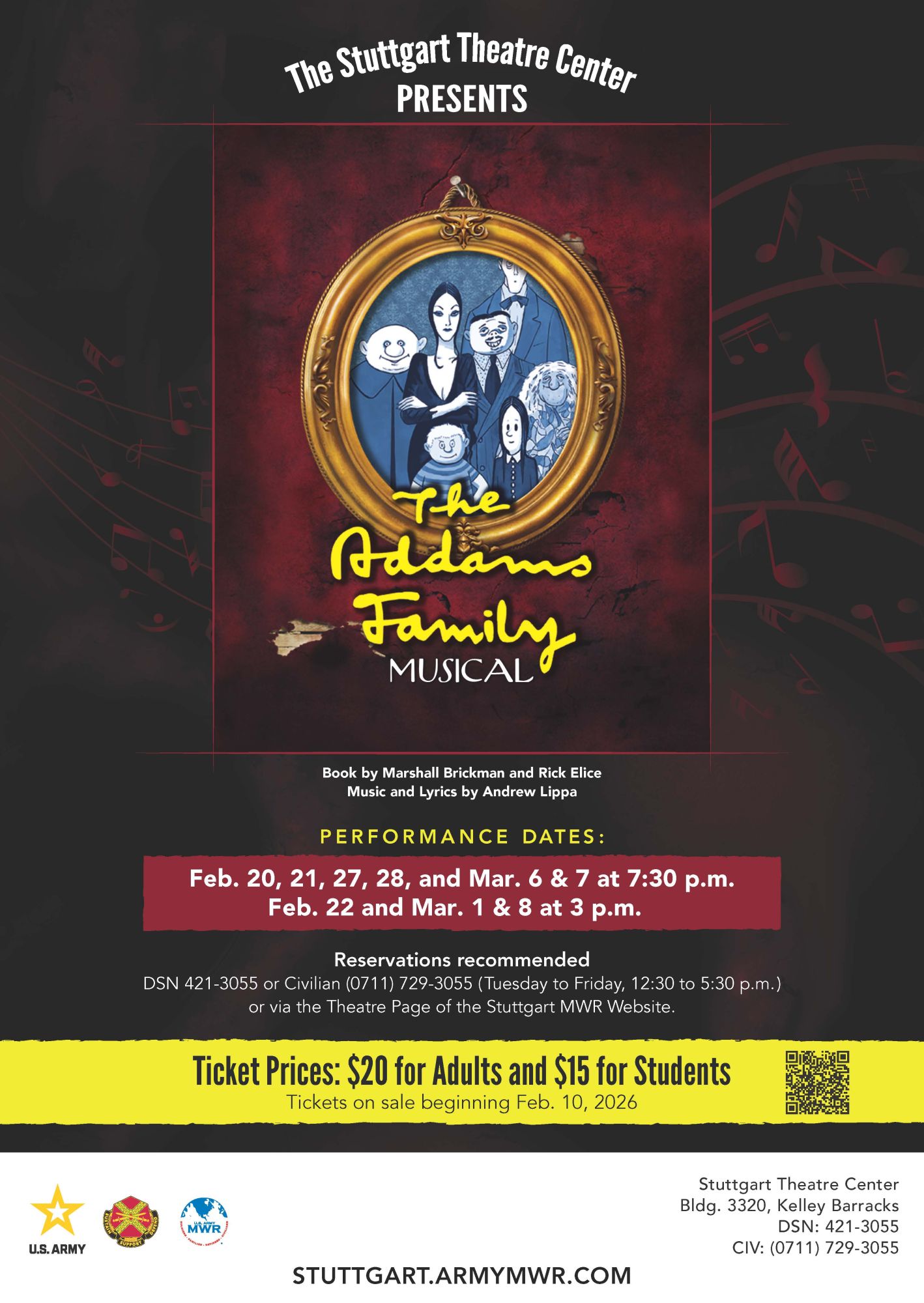 1900-2130: Awards show and presentations2130-0300: After Show Party at Citrus, Bldg. 1214, Clay KaserneOptional Gala DinnerAdults = $35Youth (12 yrs. and younger) = $12Gala Dinner Menu :- Chicken Breast with Tomato Zucchini vegetables in a tomato Basil Sauce with Rice