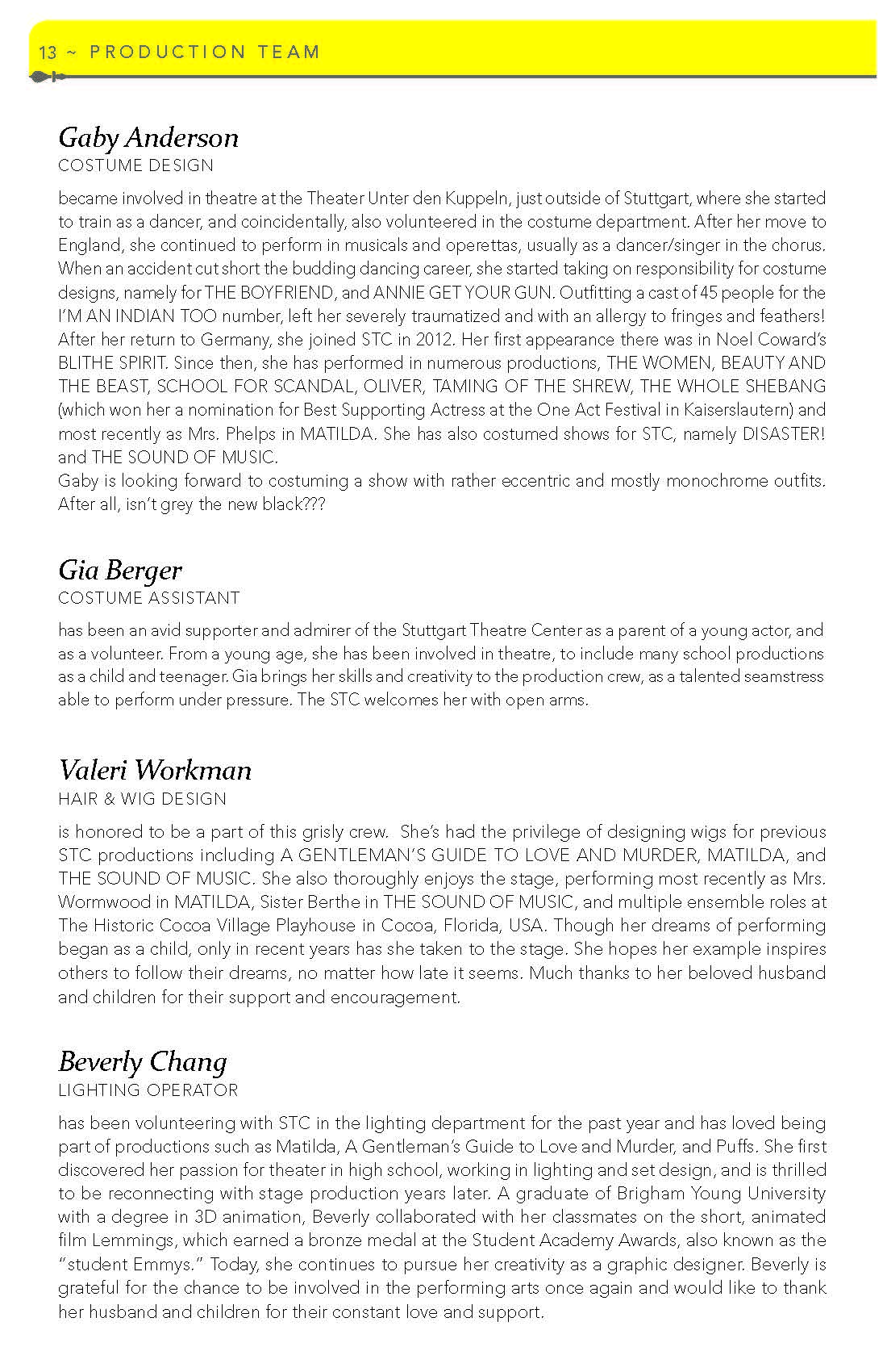 As a director, Andrea directed The Marriage of Figaro for the Boston Opera Collaborative. She also directed Oliver! and Sweeney Todd at the former Roadside Theater in Heidelberg.